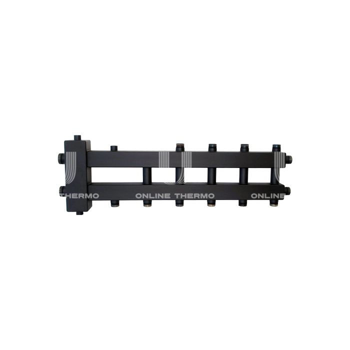 Балансировочный коллектор Uni-Fitt 437Z4136, на 6 контуров, до 60 кВт, сталь, с термоизоляцией, с гидравлическим разделителем