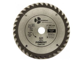 Диск пильный 160х20 мм 36 зубьев TRIO-DIAMOND Forest Long Life (FLL814) предназначен для распила древесины, ДСП, фанеры. Угол заточки 15 градусов. Максимальное число оборотов 9000 RPM. Тип диск пильный Диаметр 160 мм Количество зубьев 36 шт Ширина пропила (зуба) 2,2 мм Форма зуба ATB Максимальное число оборотов 9000 обмин Угол наклона зубьев положительный Передний угол 15 Совместимость пила циркулярная, пила дисковая