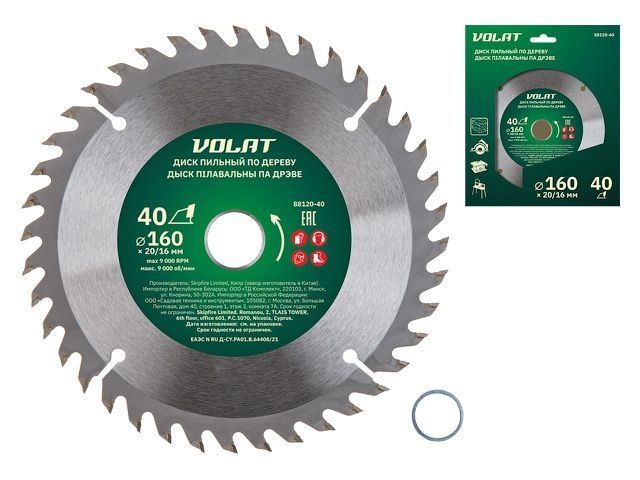 Диск пильный 160х20/16 мм 40 зуб. по дереву ВОЛАТ(твердоспл. зуб)