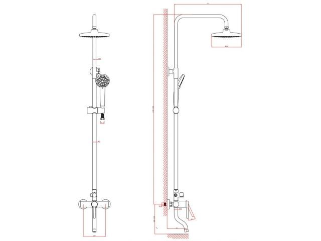 Душевая система (Lt) D35, серия Lotus белый, a-five(На стену, Короткий излив, Троп. душ: вынос 405 мм, диаметр 200 мм.)