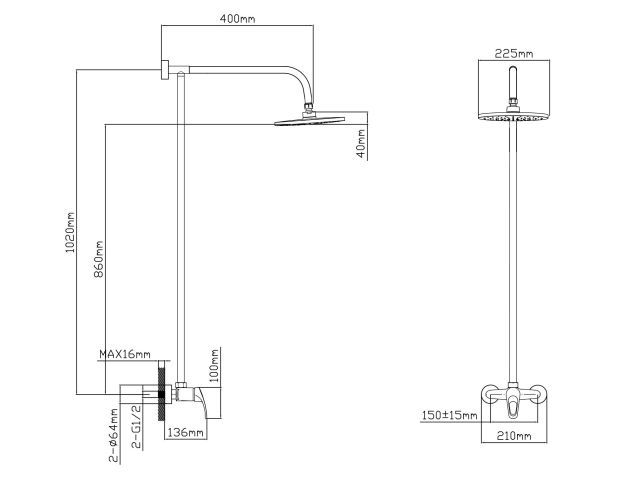 Душевая система (Lt) D35, серия URS AV Engineering(Без излива, лейка и шланг в комплекте)