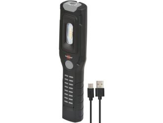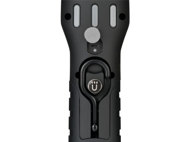 Удобный, но чрезвычайно прочный светодиодный ручной фонарь можно использовать где угодно. Он идеально подходит для гибкого использования благодаря встроенным магнитам, двум поворачивающимся на 360° крюкам и шарнирному основанию. Благодаря переключению уровней (точечный-100%-50%) сверхъярких SMD-светодиодов, светодиодный фонарь для мастерской светит до 10 часов. Зарядка инспекционного фонаря осуществляется через интерфейс USB C и с помощью кабеля для зарядки USB A - USB C, входящего в комплект. Ручной фонарь для мастерской также впечатляет следующими особенностями: Складная опорная ножка до 200° со встроенным магнитом 2 магнита на задней стороне и раскладной крюк для гибкого использования Встроенный литий-ионный аккумулятор 3,7 В/2,5 Ач с индикатором заряда Световой поток: 500 + 120 лм Цветовая температура: 6500K С кнопкой включения/выключения Продолжительность освещения: фронтальный 3/6 ч, точечный 10 ч