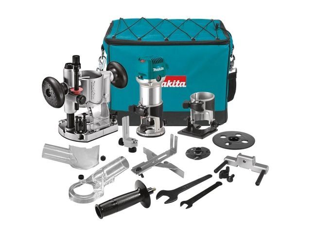 Комлектация: Сумка (1 шт.); Кромочная база Makita (1 шт.); Наклонная база Makita (1 шт.); Погружная база Makita (1 шт.); Роликовый упор Makita (1 шт.); Параллельный упор Makita RT0700C (1 шт.); Цанговый зажим Makita (6 мм) (1 шт.); Цанговый зажим Makita (8 мм) (1 шт.); Монтажный ключ (1 шт.); Пылеотвод Makita (3238 мм) (1 шт.); Направляющая втулка Makita (10 мм) (1 шт.); Гаечный ключ Makita (1 шт.); Пылеотвод Makita (3238 мм) (1 шт.); Боковая рукоятка для УШМ Makita (115-150мм) (1 шт.). Описание: Кромочный фрезер Makita RT0702CX2 используется для снятия фасок с поверхностей различных материалов, таких как алюминий, пластик, дерево. Основное устройство можно использовать с четырьмя различными подошвами. Имеется плавный пуск, регулировка частоты вращения и электронный контроль частоты вращения под нагрузкой. Мощность двигателя составляет 710 Вт.