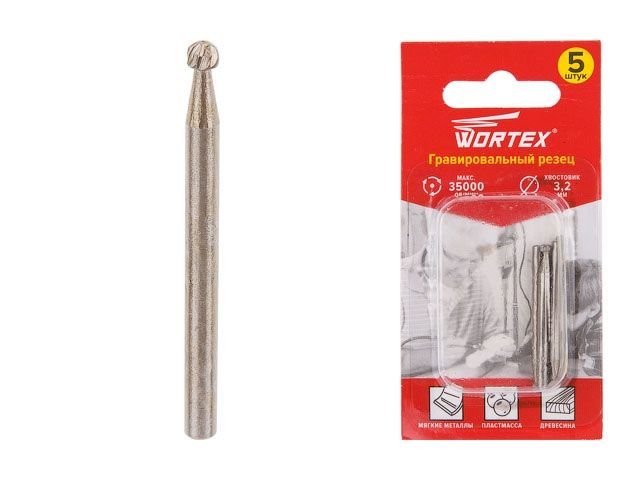 Гравировальный резец 3 мм WORTEX(раб. диам. 3.0 мм, диам. хвостовика 3.2 мм, 35000 об/мин)