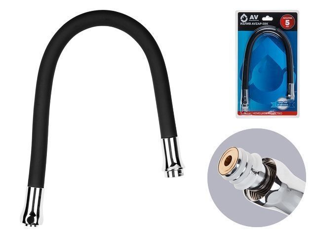 Излив гибкий чёрный для смесителя, AV Engineering(Диаметр подключения 3/4')