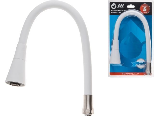 Излив гибкий с двухрежимной лейкой белый для смесителя, AV Engineering(Диаметр подключения 3/4')
