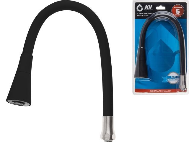 Излив гибкий с двухрежимной лейкой черный для смесителя, AV Engineering(Диаметр подключения 3/4')