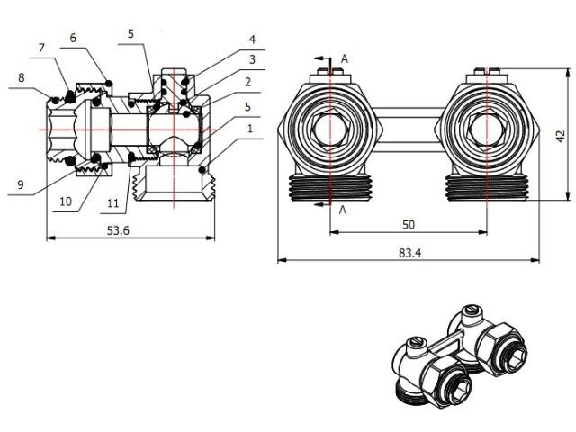 Узел нижнего подключения приборов отопления предназначен для подключения отопительных приборов с нижним расположением присоединительных штуцеров с межосевым расстоянием 50 мм к разводящим трубопроводам горизонтальных двухтрубных систем отопления. Узлы изготавливаются в угловом исполнении. Отключение прибора отопления осуществляется запорно-регулировочными вентилями, путем полного их закрытия вращением по часовой стрелке. Регулирование (балансировка) прибора отопления осуществляется частичным перекрытием запорно-регулировочных вентилей на необходимую величину согласно проекту (расчету). Узел может соединяться с медными, стальными, полимерными или металлополимерными трубами системы отопления с помощью адаптеров. технические характеристики: Тип крана: угловой; Тип завтвора: шар; Диаметр подключения: нар.12 х 34 нар.; Рабочая среда: вода; Материал основных деталей: никелированная латунь; Максимальная температура теплоносителя: до 110С; Рабочее давление: 16 бар