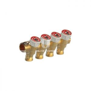 Коллектор распределительный с запорными клапанами Giacomini R585CY064, 3/4" ВР-НР, на 4 контура 1/2" НР ЕК