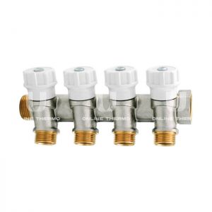 Распределительные коллекторы Itap-465 оснащены перекрывающими вентилями и используются с фитингами для медных, PEX, полибутиленовых или металлопластиковых трубопроводов. Основные характеристики распределительных коллекторов Itap-465: Материал корпуса: кованая никелированная латунь. Максимальная рабочая температура: 110°C. Резьба: ISO228 (эквивалентно DIN EN ISO 228 и BS EN ISO 228). Размер выходов: 1/2". Наружная резьба с конической посадкой и внутренним диаметром 16 мм. Перекрывающие вентили.