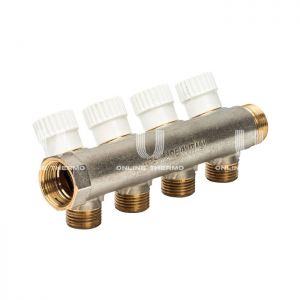 Коллектор распределительный с запорными клапанами Luxor 68512604, 3/4", на 4 выхода 1/2"
