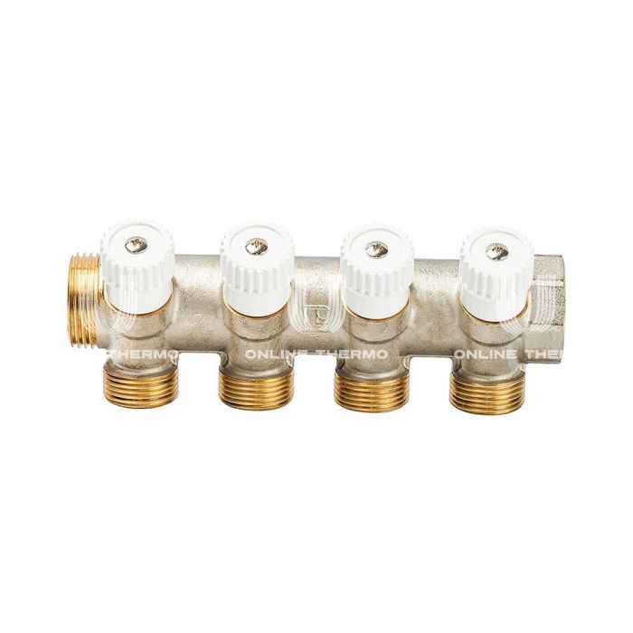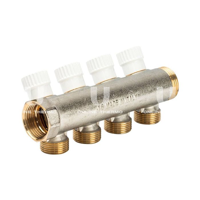 Коллектор распределительный с запорными клапанами Luxor 68513504, 1", на 4 выхода 3/4" EK