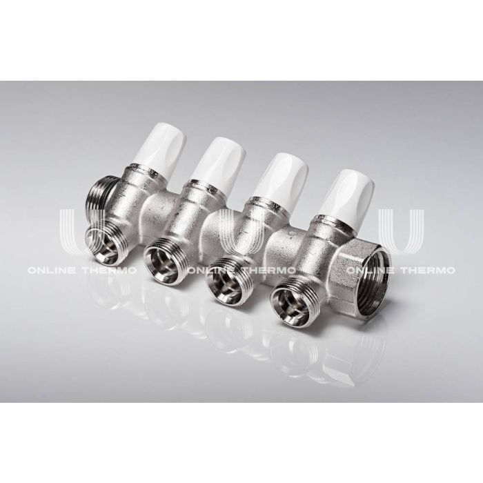 Коллектор распределительный с запорными клапанами Rehau Rautitan 11316471001, G1" ВР-НР, на 4 контура 3/4" НР, модульный, конусное соединение