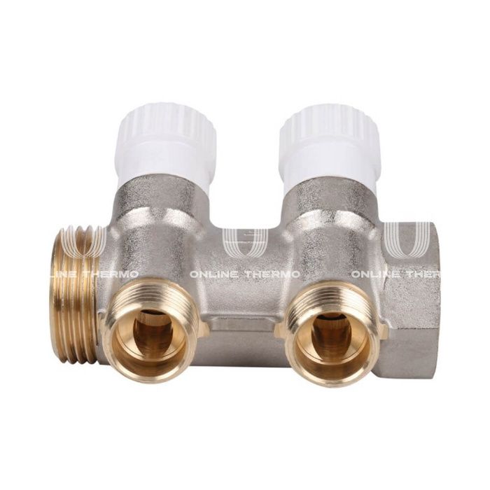 Коллектор распределительный с запорными клапанами Stout 1", 2 отвода 1/2"