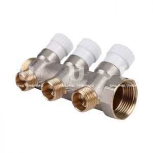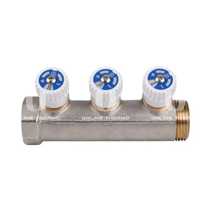 Коллектор распределительный с запорными клапанами Stout 1", 3 отвода 1/2"