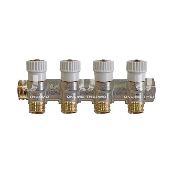 Коллектор распределительный с запорными клапанами Stout 3/4", 4 отвода 1/2" плоское уплотнение