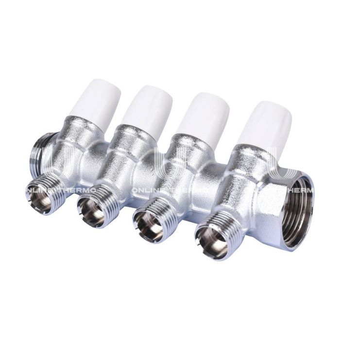 Распределительные коллекторы с вентилями Tiemme серии Maxima имеют межосевое расстояние отводов 36 и 50 мм и предназначены для подвода, регулирования и распределения рабочей среды от основного трубопровода в системах отопления и водоснабжения. Корпус коллектора изготавливается из хромированной латуни. К коллекторам подходят конусные соединители (евроконус) 1/2 и 3/4. Коллекторы производятся на 2, 3, 4 и 5 выходов с основной магистралью размерами 3/4 и 1 дюйм. Их можно монтировать с металлопластиковыми, полипропиленовыми, PEX трубами, стальными и медными трубами через специальные переходники.