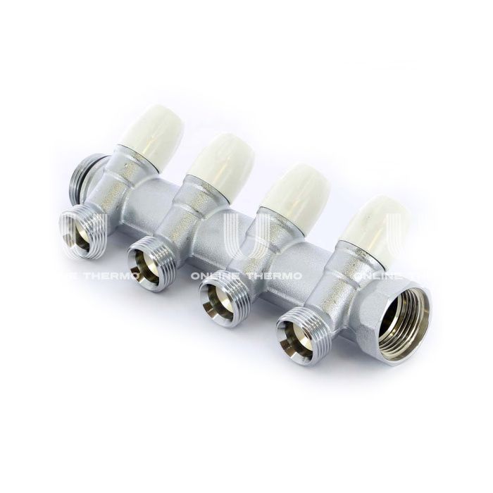 Коллектор распределительный с запорными клапанами Tiemme Maxima 1860019 ВР-НР 1", на 4 контура НР 3/4", модульный, конусное соединение, хромированный