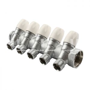 Распределительные коллекторы с вентилями Tiemme серии Maxima имеют межосевое расстояние отводов 36 и 50 мм и предназначены для подвода, регулирования и распределения рабочей среды от основного трубопровода в системах отопления и водоснабжения. Корпус коллектора изготавливается из хромированной латуни. К коллекторам подходят конусные соединители (евроконус) 1/2 и 3/4. Коллекторы производятся на 2, 3, 4 и 5 выходов с основной магистралью размерами 3/4 и 1 дюйм. Их можно монтировать с металлопластиковыми, полипропиленовыми, PEX трубами, стальными и медными трубами через специальные переходники.