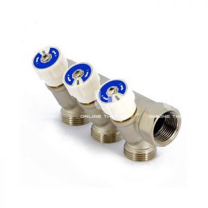 Коллектор распределительный с запорными клапанами Uni-fitt 402N3330, 3/4" ВР-НР, на 3 контура 3/4" НР, модульный, конусное соединение