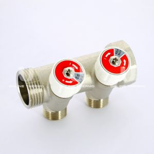 *Коллектор распределительный с запорными клапанами Uni-fitt 404N4220, 1" ВР-НР, на 2 контура 1/2" НР, модульный, конусное соединение