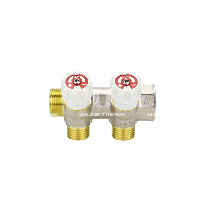 Коллектор распределительный с запорными клапанами Varmega VM14712, 3/4", на 2 выхода 3/4"ЕК