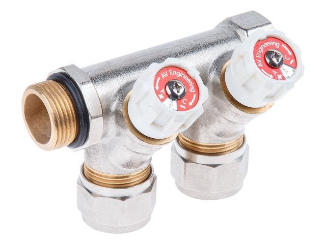 Коллектор с отсекающими вентилями, 3/4' х 2 вых. (16 х 2.0), AV Engineering
