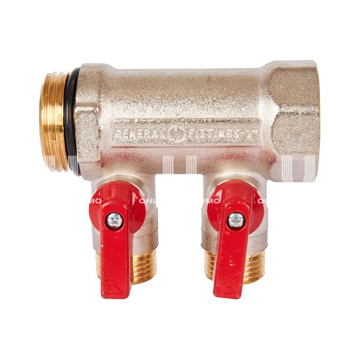 Коллектор с шаровыми кранами SMB 6210 1", 2 отвода 1/2" (красные ручки)