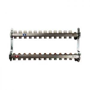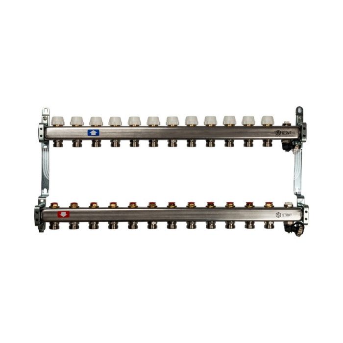 Коллектор Stout из нержавеющей стали без расходомеров, с воздухоотв. и сливом 12 вых.