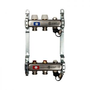 Коллектор Stout из нержавеющей стали без расходомеров, с воздухоотв. и сливом 2 вых.