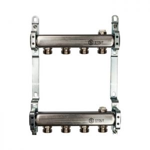 Коллектор Stout из нержавеющей стали для радиаторной разводки 4 вых.