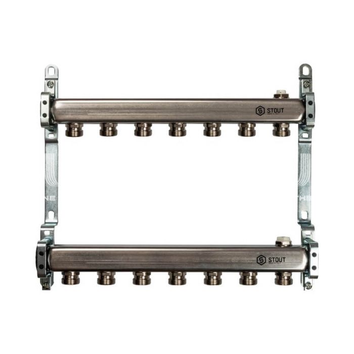 Коллектор Stout из нержавеющей стали для радиаторной разводки 7 вых.