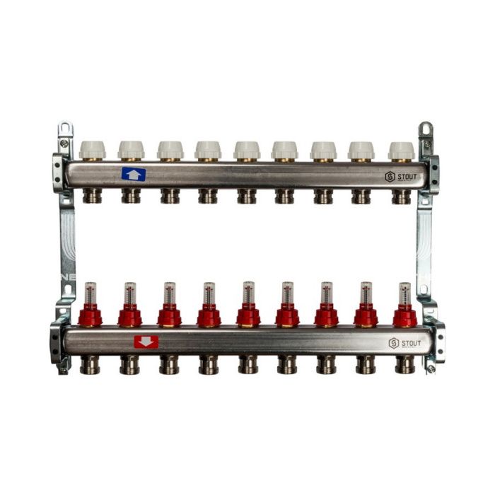 Коллектор Stout из нержавеющей стали с расходомерами 9 вых.