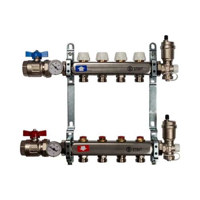 Коллектор Stout из нержавеющей стали в сборе без расходомеров 4 вых.