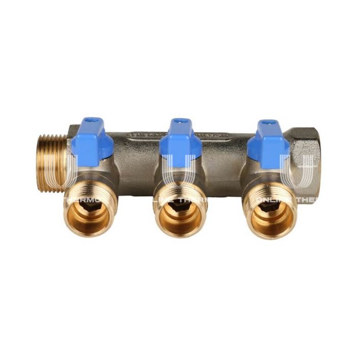 Коллектор Stout с шаровыми кранами 3/4", 3 отвода 1/2" (синие ручки)