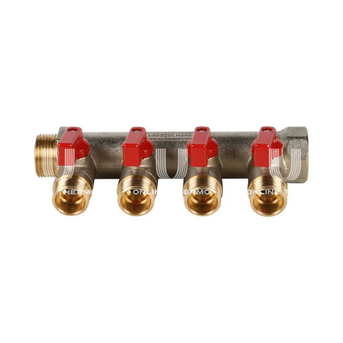 Коллектор Stout с шаровыми кранами 3/4", 4 отвода 1/2" (красные ручки)