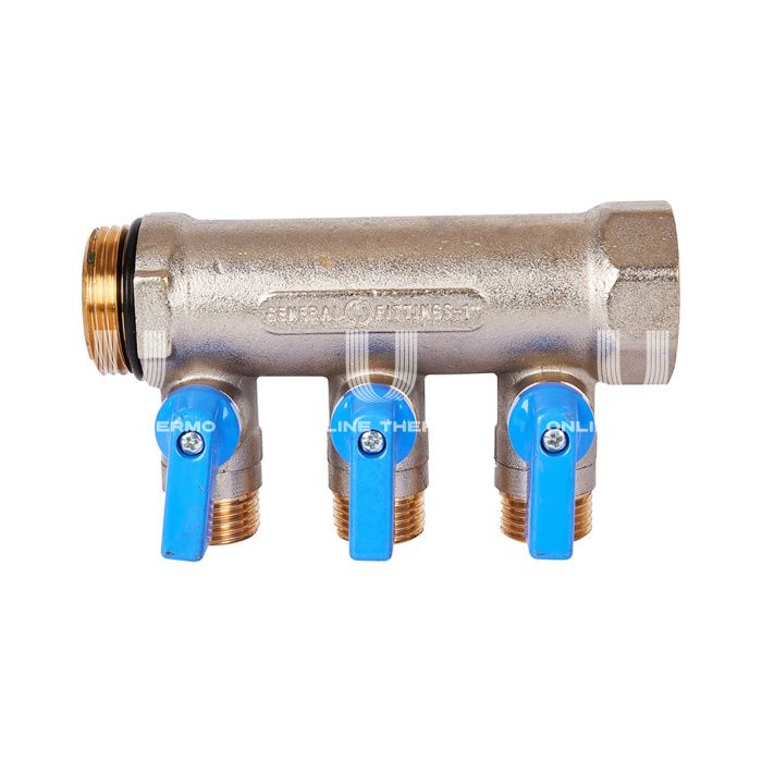 Коллектор Stout с шаровыми кранами SMB 6211 1", 3 отвода 1/2" (синие ручки)