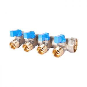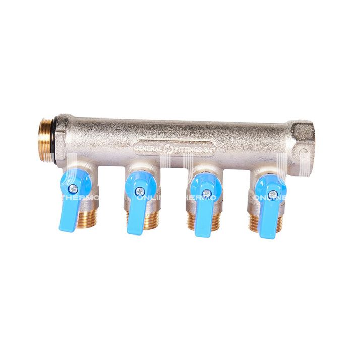 Коллектор Stout с шаровыми кранами SMB 6211 3/4", 4 отвода 1/2" (синие ручки)