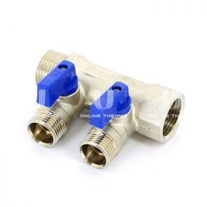 Коллекторы с шаровыми кранами Tiemme Nino серии 1822 предназначены для подвода, регулирования и распределения рабочей среды от основного трубопровода. Коллектор может использоваться в системах отопления и водоснабжения. Корпус коллектора изготавливается из латуни, предлагаются модели с никелированным покрытием и без покрытия. Расстояние между осями отводов составляет 36 мм. К коллекторам подходят конусные соединители 1/2". Коллектор можно соединять с PEX, многослойными и медными трубами через специальные переходники. Так как коллектор имеет шаровый затвор, то он работает только в двух режимах: полностью открытый и полностью закрытый. Внимание! Коллекторы с шаровыми кранами не являются регулировочными! Внимание! Для коллекторов с конусными отводами на ½ рекомендуется подбирать фитинг того же производителя, так как геометрия отводов ½ у каждого производителя может отличаться.