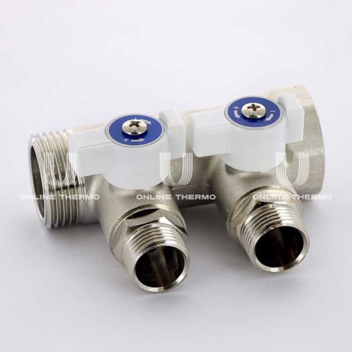 Коллектор Uni-Fitt с шаровыми кранами 424N4220, 1" ВР-НР на 2 контура 1/2" НР, модульный, конусное соединение
