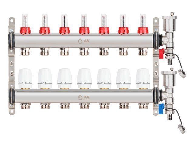 Коллекторная группа AVE136, 7 вых. AV Engineering(PRO серия Для теплого пола и водоснабжения)