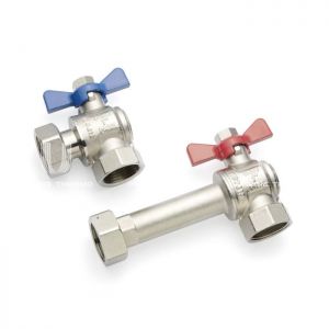 Комплект угловых шаровых кранов Rehau предназначен для подключения подающего и обратного трубопроводов от котла к распределительным коллекторам Rehau HKV / HKV-D / HLV. Комплект состоит из кранов с накидной гайкой, где кран с красной ручкой используется для линии подачи, а кран с синей ручкой – для обратной линии. Кран для подачи имеет удлиненный патрубок, чтобы развести трубы подающей и обратной магистрали в пространстве. Подключение кранов к трубопроводам осуществляется через внутреннюю резьбу G1", а к коллектору через накидные гайки G1" с плоской прокладкой.