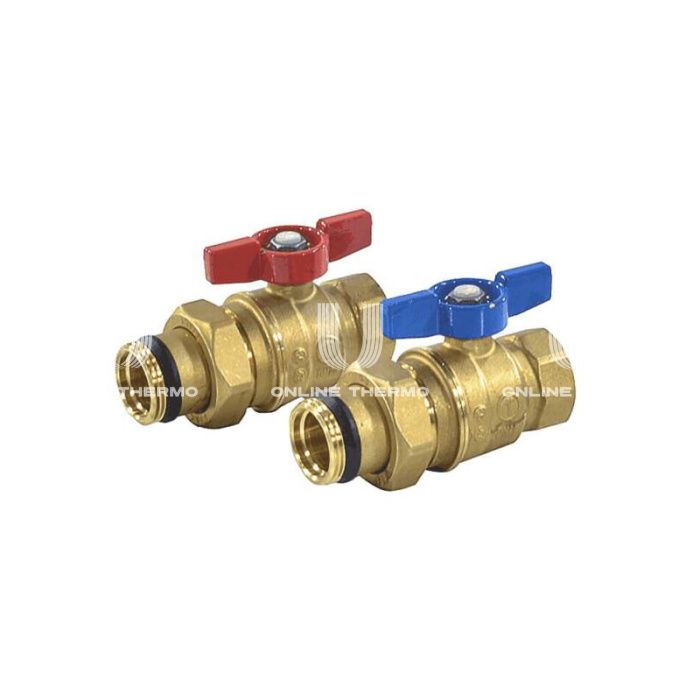 Комплект прямых шаровых кранов Giacomini R859KY007 1" ВР-НР, с разъемным соединением, полнопроходной, ручка-бабочка