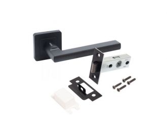 Комплект ручка и защелка АЛЛЮР АРТ 'ВЕНСАН' BL+L45-8 BL (26150/S45) матовый черный