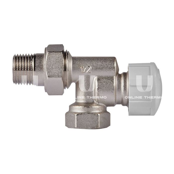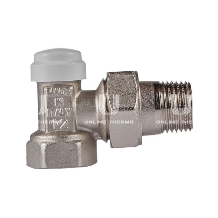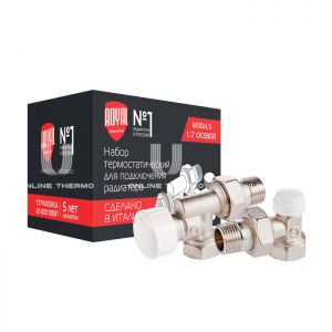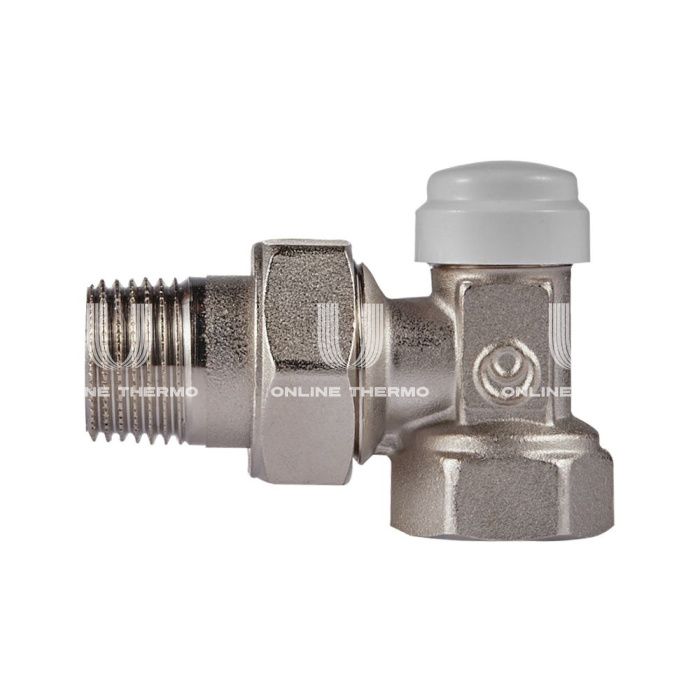 Состав комплекта:клапан запорный угловой, Клапан термостатический осевой