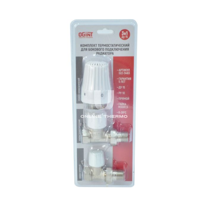 Комплект термостатический прямой с запорным клапаном и термоголовкой Ogint 1/2" ВР-НР, без преднастройки