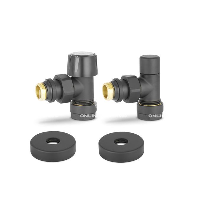 Состав комплекта:Клапан термостатический угловой, клапан запорный угловой