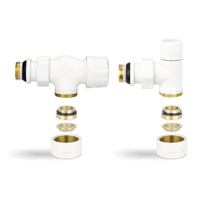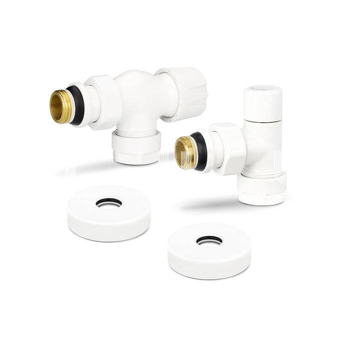 Комплект термостатический с запорным клапаном Varmega №3 VMDV12-110415, 1/2" x 3/4"EK ВР-НР, осевой, белый