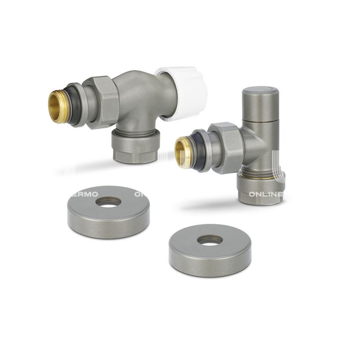 Состав комплекта:клапан запорный угловой, Клапан термостатический осевой
