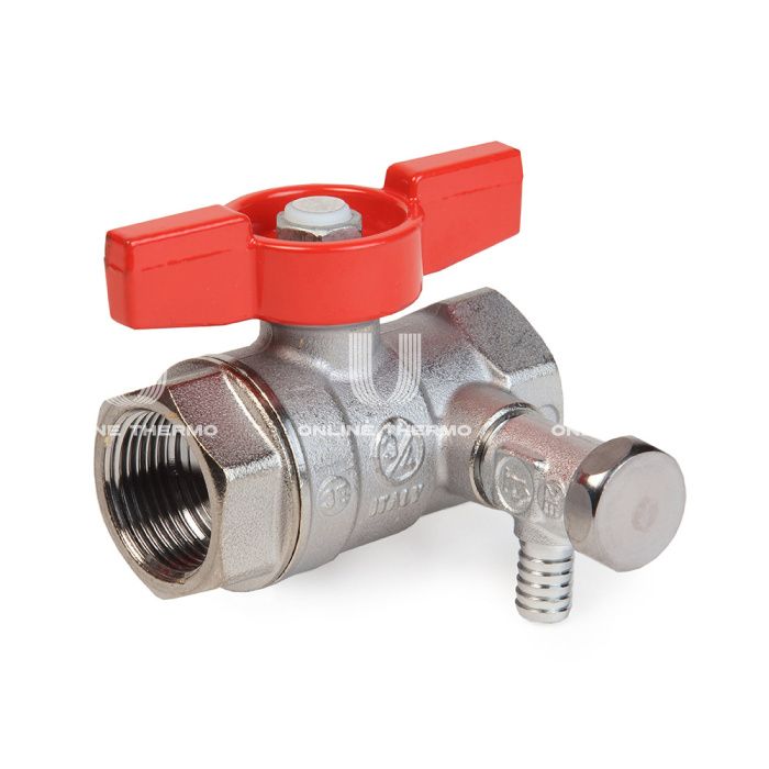 Кран шаровый Giacomini R251SX003 1/2" ВР, с заглушкой 1/4" и дренажным вентилем, ручка-бабочка